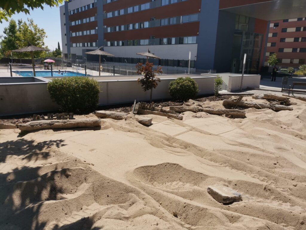 pueden subir y el arenero, para que los más peques jueguen con sus cubos de arena y con