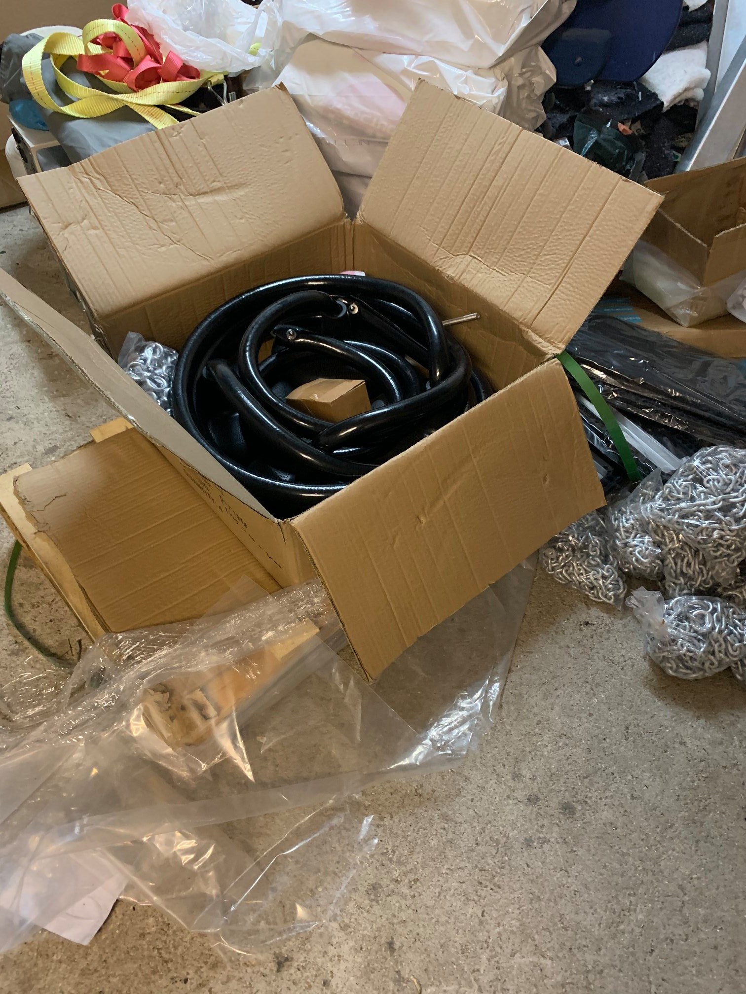 unas cadenas, asiento nido, tapones de diferentes métricas,